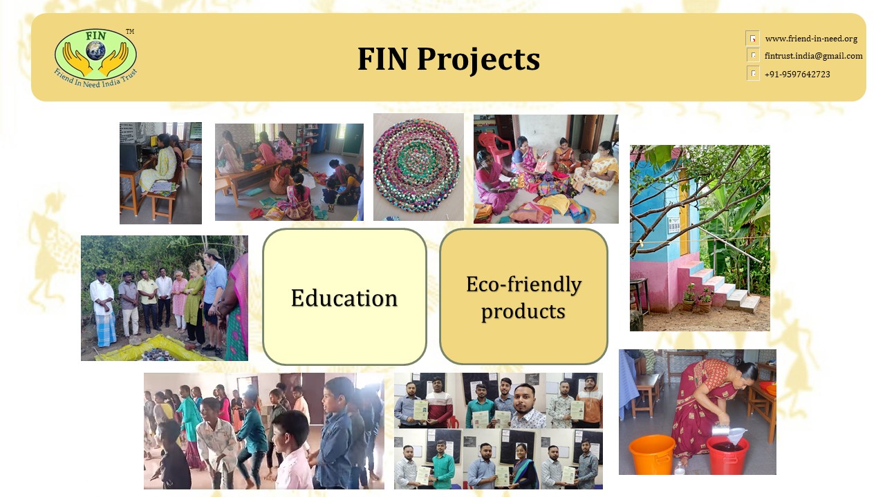Friend In Need India Trust (FIN) projects operate through two complementary pillars —Education and EcoProducts & Services which together drive sustainable, community-led development in Kameswaram and Vizundamavady villages in Tamil Nadu, in the town Ramgarh Cantt in Jharkhand and in our online Centre for Circular Economy Community.